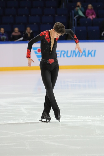 Seniorimiesten kilpailun voitti Suomen Roman Galay 174,61 pisteellä. Galayn vapaaohjelmaan osui muutamia virheitä ja helpotuksia, mutta myös laadukkaita elementtejä, kuten kolmoisritti ja kolmoissalchow.