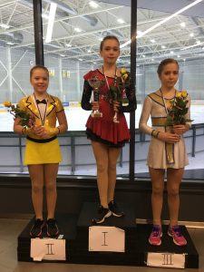 Tyttöjen Suomen mestaruuteen luisteli Fanny Lindfors EsJt pistein 104,15, Hopeaa sai Tapparan Olivia Lisko 98,03 ja pronssia ETK:n Mai Helske 96,48.